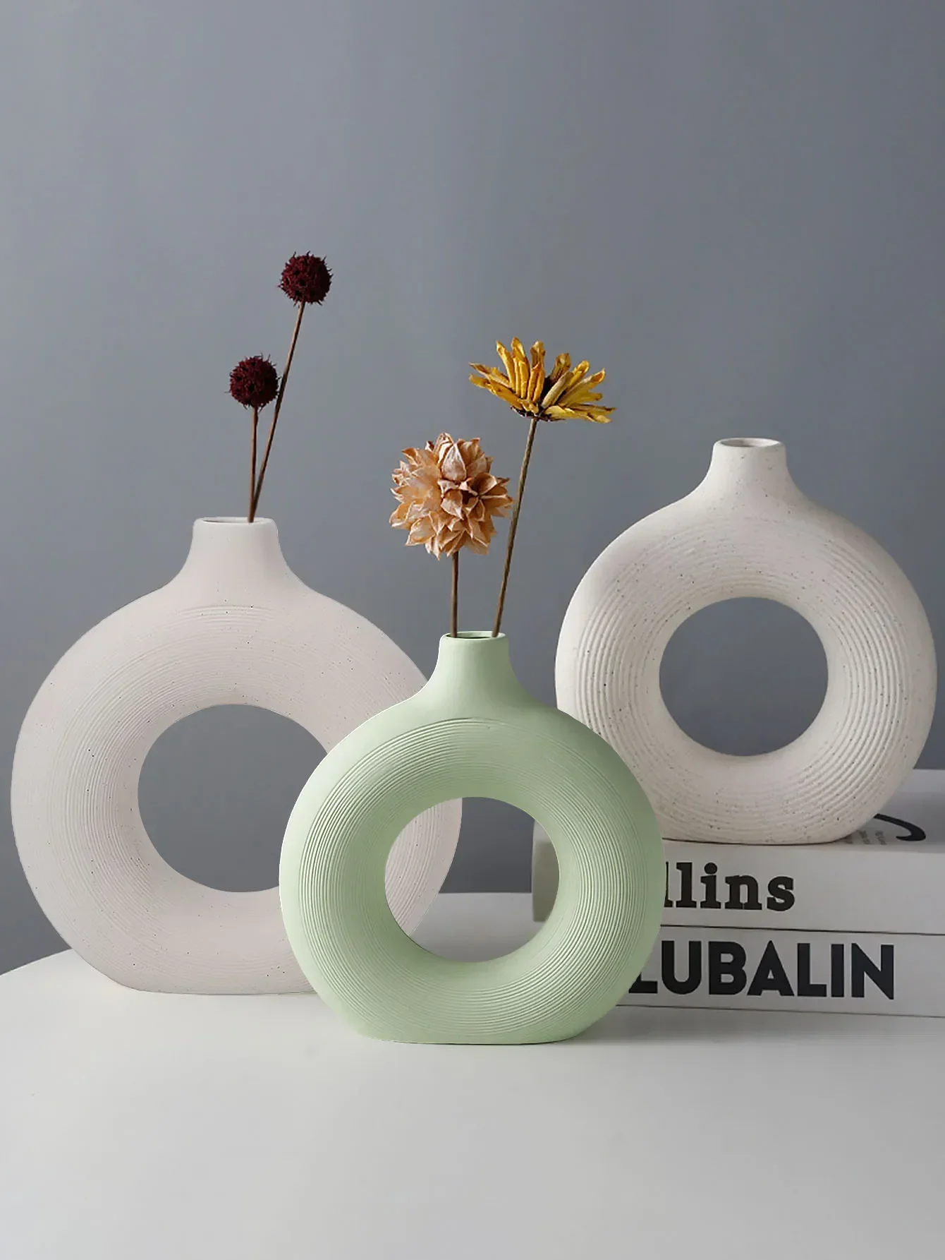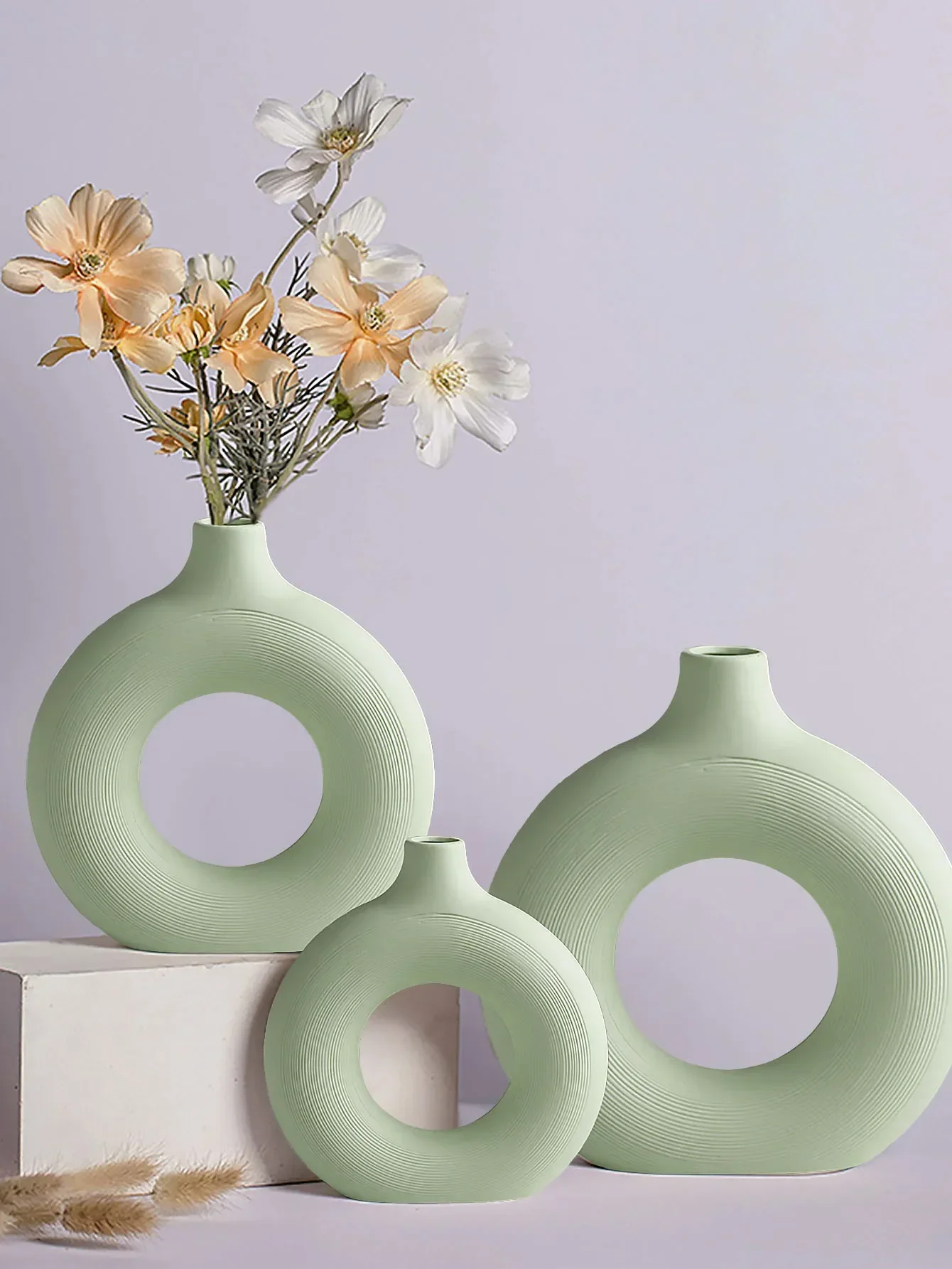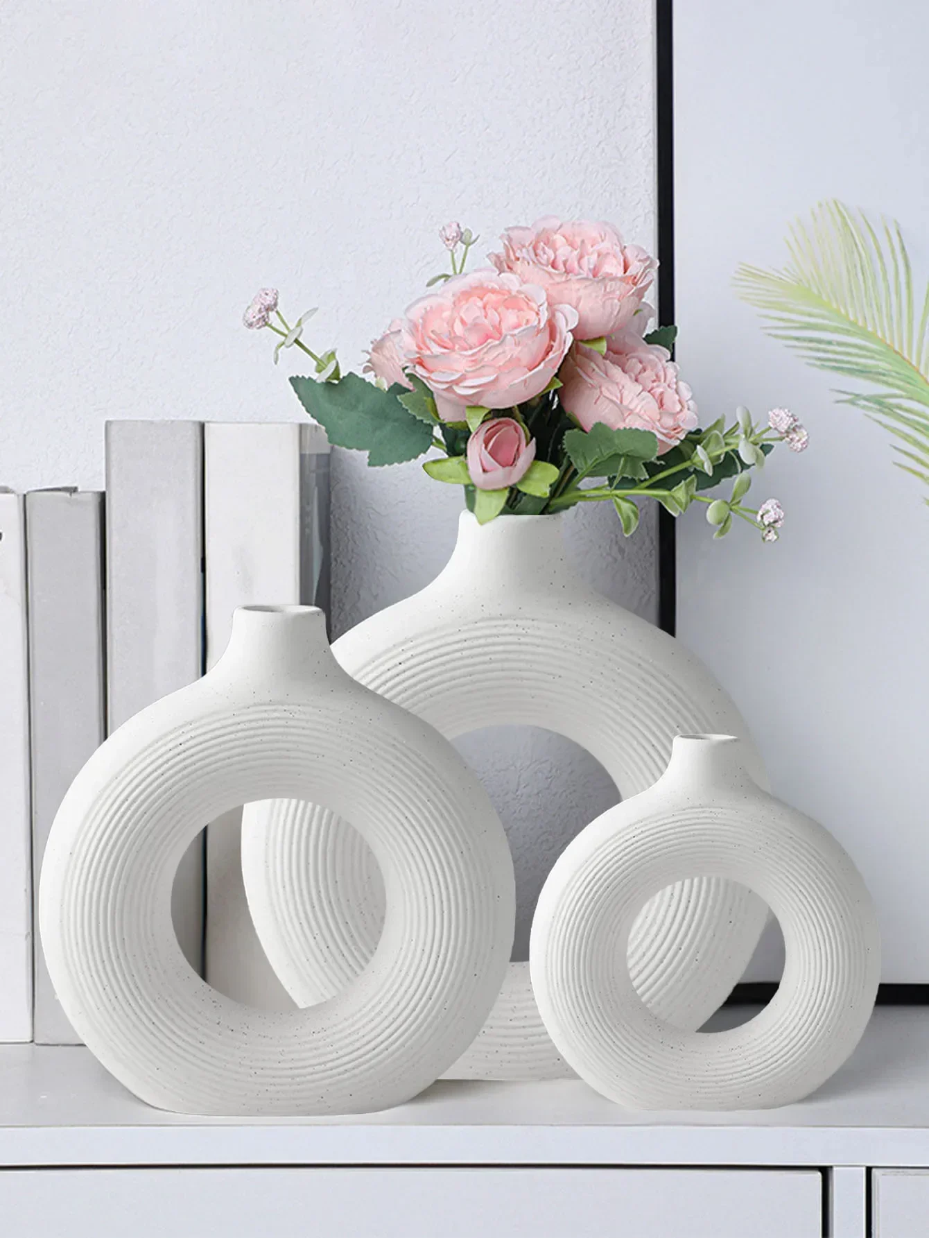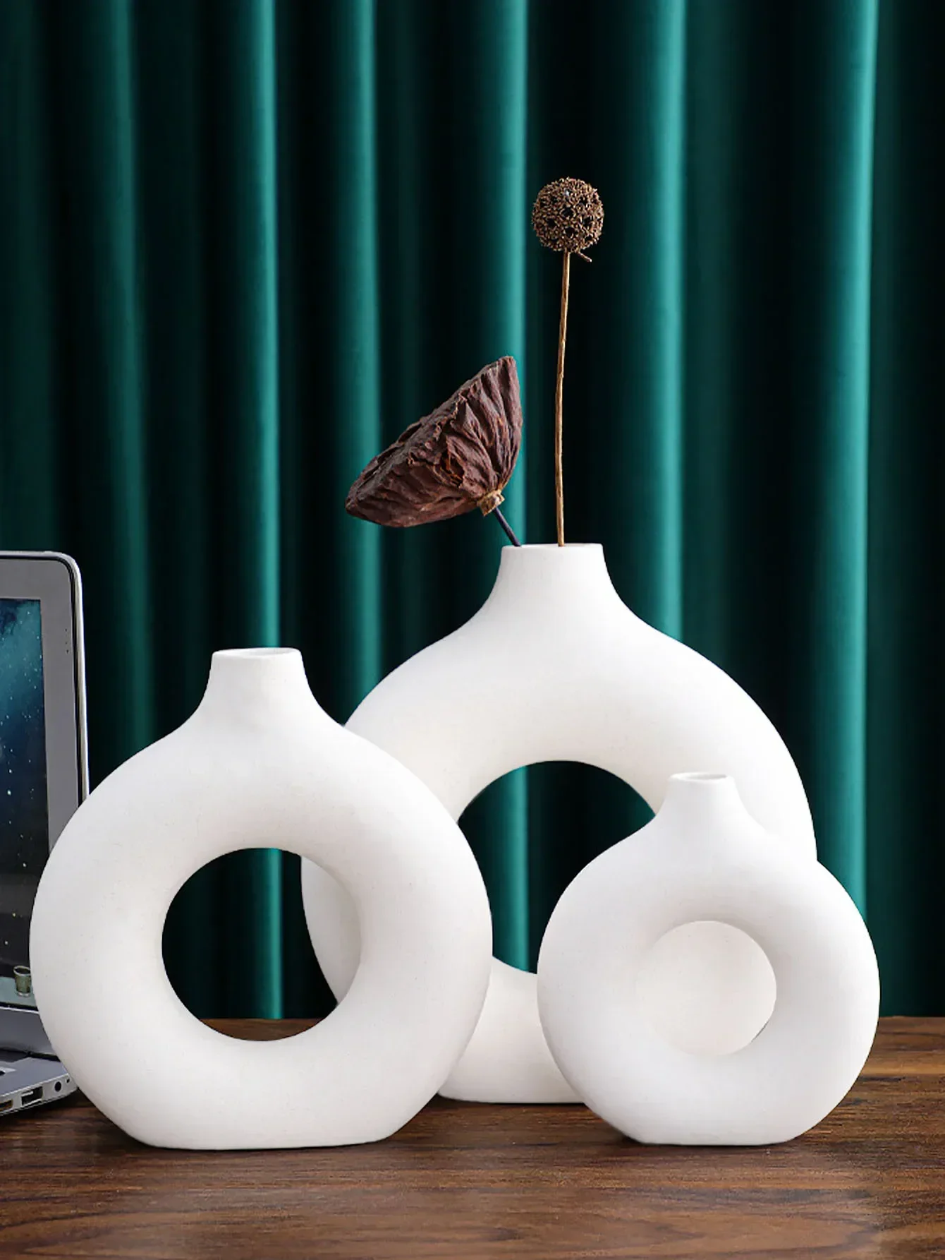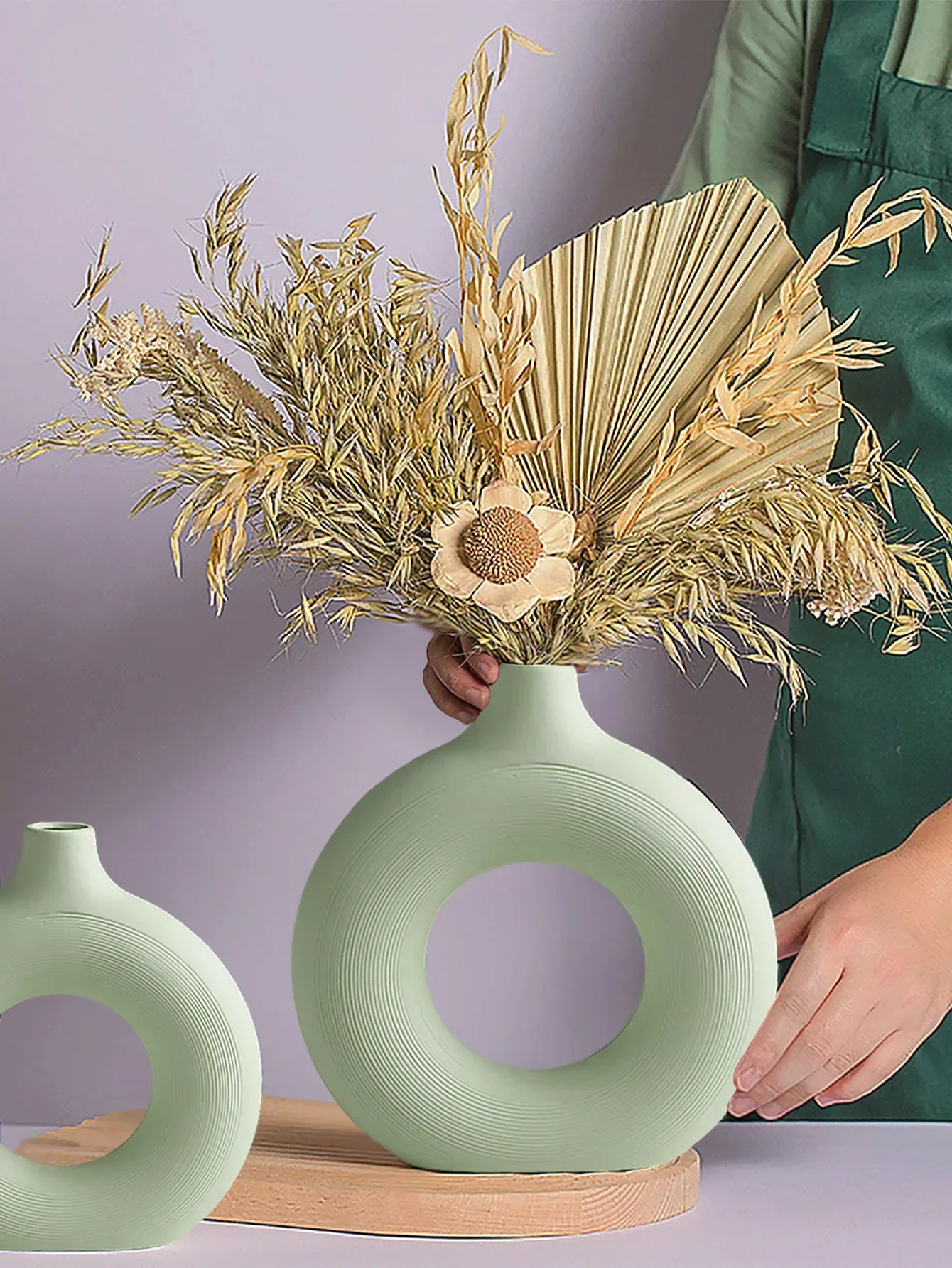 O Vaso Decorativo WhiteLoop é aquele toque moderno que muda o clima da sua casa sem esforço. Seu design em formato donut traz leveza, estilo e uma presença visual que combina com qualquer ambiente. Perfeito para compor mesas, aparadores e prateleiras, ele faz o simples parecer especial.
